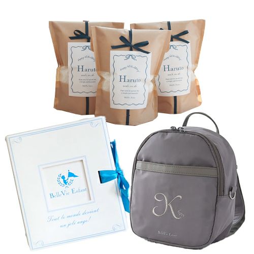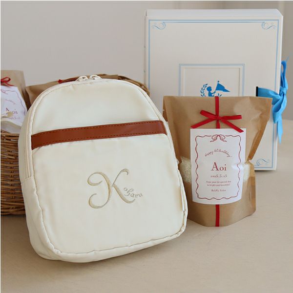 リュックとお米に名入れしてもらいとっても可愛いセットで楽しめました😊