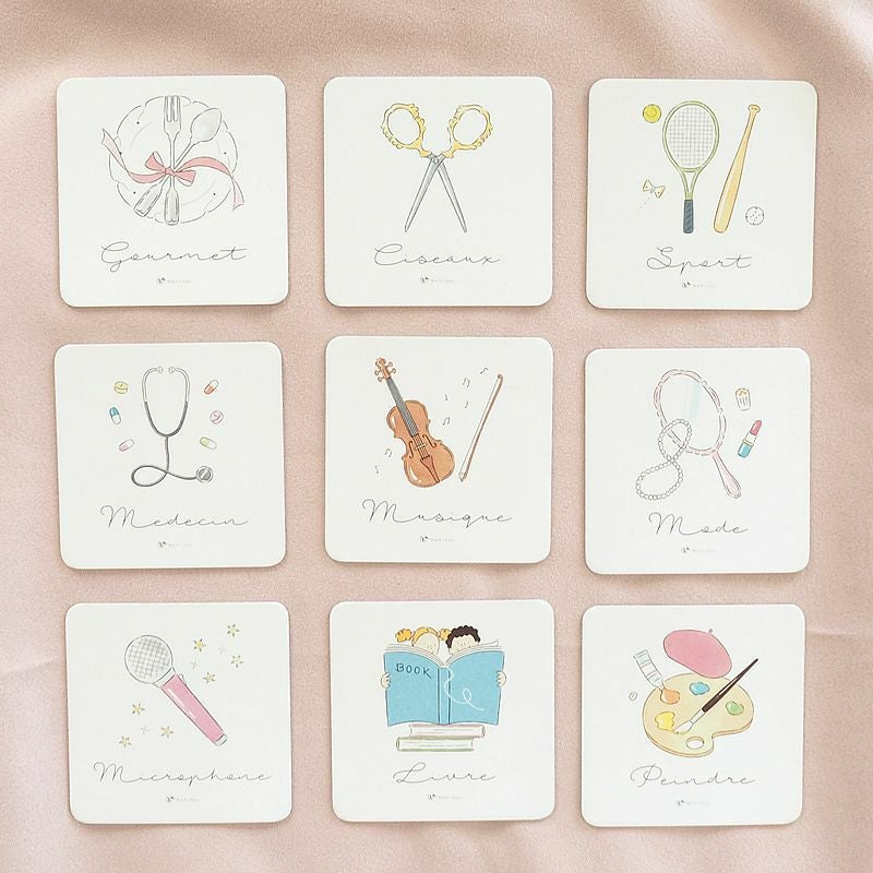カードを並べて、初めに手に取ったものでその子の将来を占うというものです。
