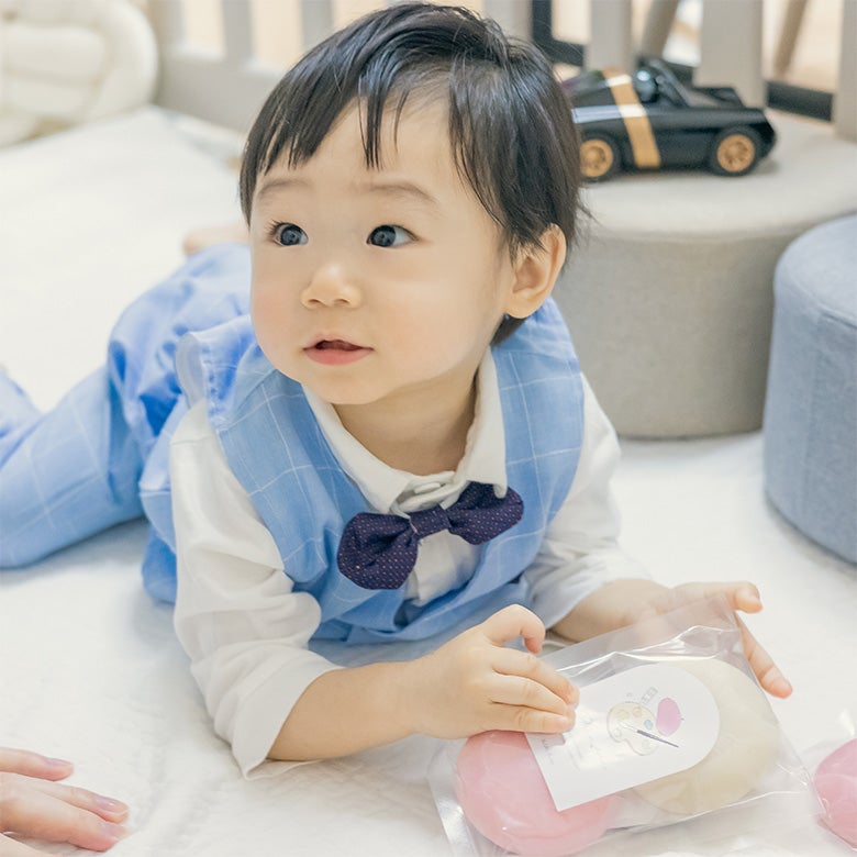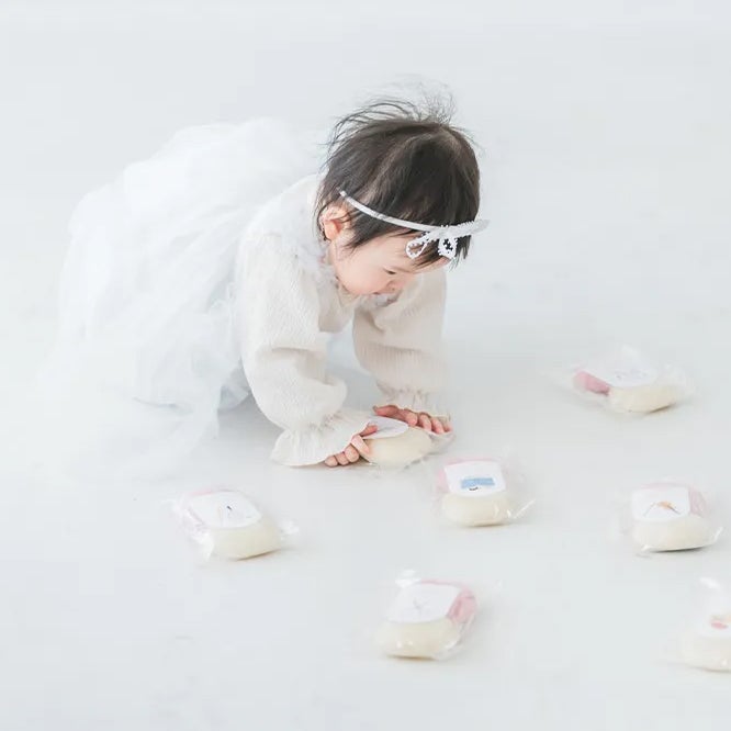 「一升分のお米(約1.8kg)を使って作るお餅を、一歳の誕生日を迎えた子供に持たせるお祝い行事を「一升餅」と言います。 お子様の未来の幸せを願って『一升』と『一生』を掛けて「一生食べ物に困らないように」「一生長生き出来るように」、 お餅が丸いことから「円満な人生を送れるように」という 願いをこめて行うお祝いです。