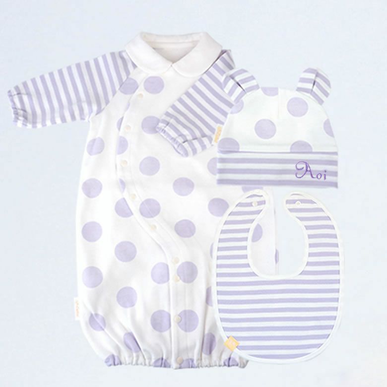3. シェリ2wayベビーオール+ベビーキャップ+リバーシブルスタイ ギフトセット パープル