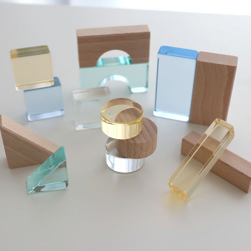 クリアアクリルと木の積み木の26ピースセット