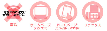 Q.電話注文はできますか? 大変申し訳ございませんが、聞き間違い等でお客様にご迷惑をおかけする可能性がございますので お電話でのご注文は承っておりません。 弊社ホームページよりインターネットでご注文くださいませ。モバイルサイトもございますので携帯電話からのご注文も可能です。インターネットからのご注文が難しい場合はファックス注文が可能です。弊社規定の注文書がございますので、一度お電話にてご連絡いただきましたら注文書をファックスにて送付いたします。 Tel.076-259-1430